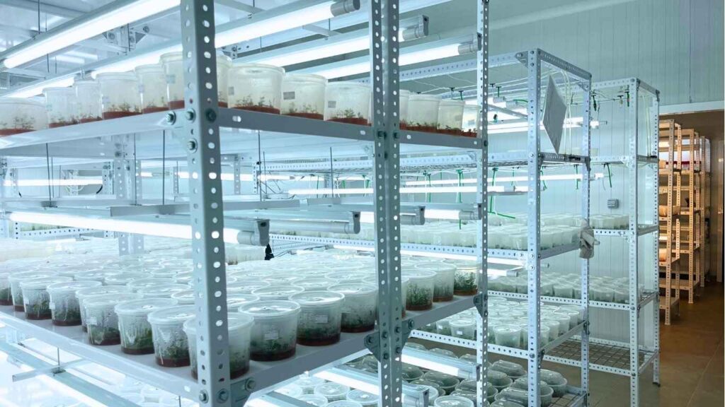 Nuestro laboratorio de micropropagación está equipado con tecnología de vanguardia y un protocolo de esterilización avanzado que asegura un entorno libre de contaminaciones. Gracias a ello, podemos producir grandes volúmenes de plantas por encargo de forma eficiente y segura.