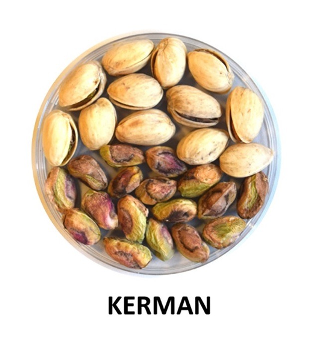 KERMAN Es una de las variedades de pistacho más consumidas por su excelente sabor y producción en el mundo y fue seleccionada en Irán (en la provincia de Kerman) primero fue introducida con gran éxito en California (EE. UU.). Esta variedad necesita unas 1000 horas de frío y unas 3500 horas de calor para que el fruto brote correctamente. Su floración es tardía (finales de abril) y su maduración (principios de octubre).