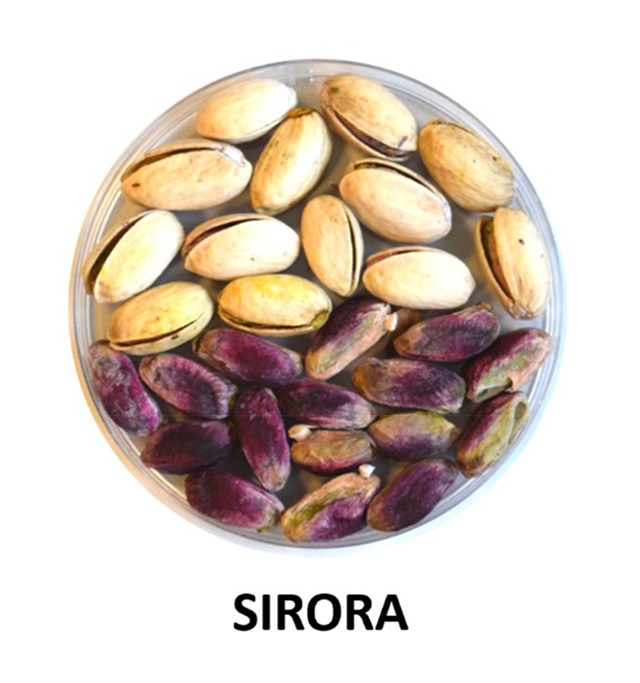 La variedad de pistacho de nuestro vivero Sirora, se parece mucho a la de la variedad Kerman, pero es un poco más pequeña. Su resistencia es mayor que la de otras variedades. Tiene una gran capacidad de producción en condiciones más duras en comparación con otras variedades de pistacho. Principalmente para la industria de los snacks.